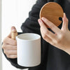 Caneca de Cerâmica 310ml com Alça de Madeira, Tampa e Colher, Presente Perfeito para Casais e Decoração de Escritório - Haustter - Haustter