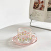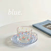 Conjunto de Xícara e Pires de Café Coreano, Xícara de Café Expresso Pintada à Mão com Estampa de Plantas e Flores - Haustter