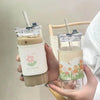 Copo Quadrado de Vidro com Tampa e Canudo para Café, Leite, Chá e Suco - Haustter