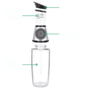 Um recipiente para armazenar e medir o óleo enquanto cozinha. Ele tem uma grande boca de vidro borossilicato e uma saída de aço inoxidável que permite que o óleo seja derramado de maneira controlada e sem vazamento. O produto também tem uma função de pressionar o botão para drenar o óleo e uma escala para medir a quantidade de óleo. Ele é projetado para ser fácil de limpar e ajudar a manter uma vida saudável ao cozinhar com óleo de maneira controlada e medida.