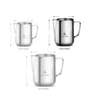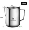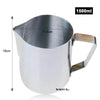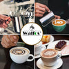 Jarro de leite para café expresso Walfos, perfeito para latte art e preparo de bebidas especiais. Fabricado em aço inoxidável reforçado, com design ergonômico e alça confortável, ideal para criar texturas e detalhes artísticos no seu café.