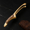 A Pinça Haustter é forjada para quem sabe que churrasco é alquimia, não acidente — aço inoxidável frio como garras de lobo, madeira nobre quente como o carvão, peso na mão que sussurra: "Aqui nascem lendas".