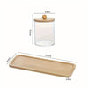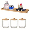 3 Porta Cotonetes Bolas e Discos Algodão Tampa e Bandeja de Bambu, Conjunto - Haustter